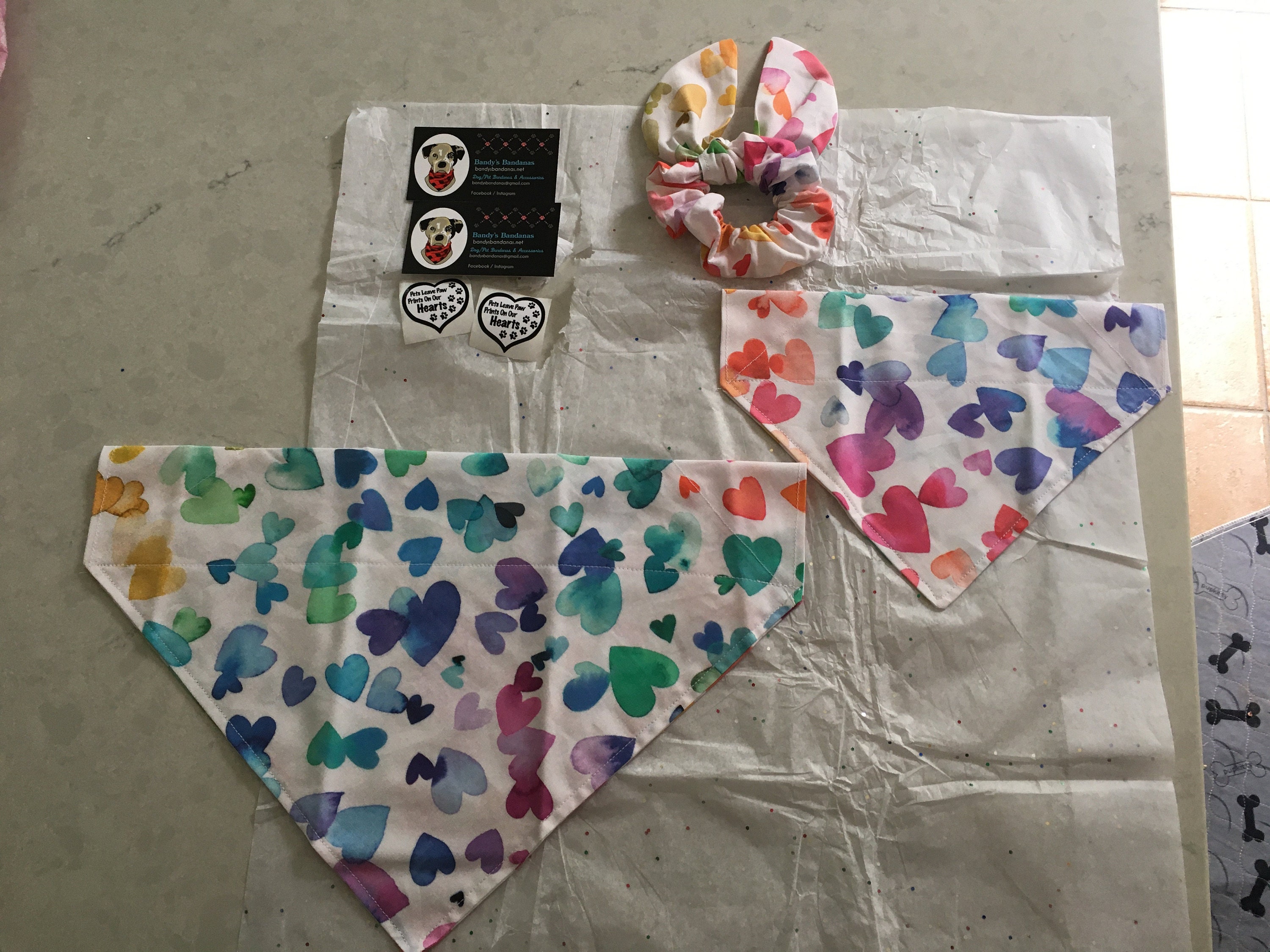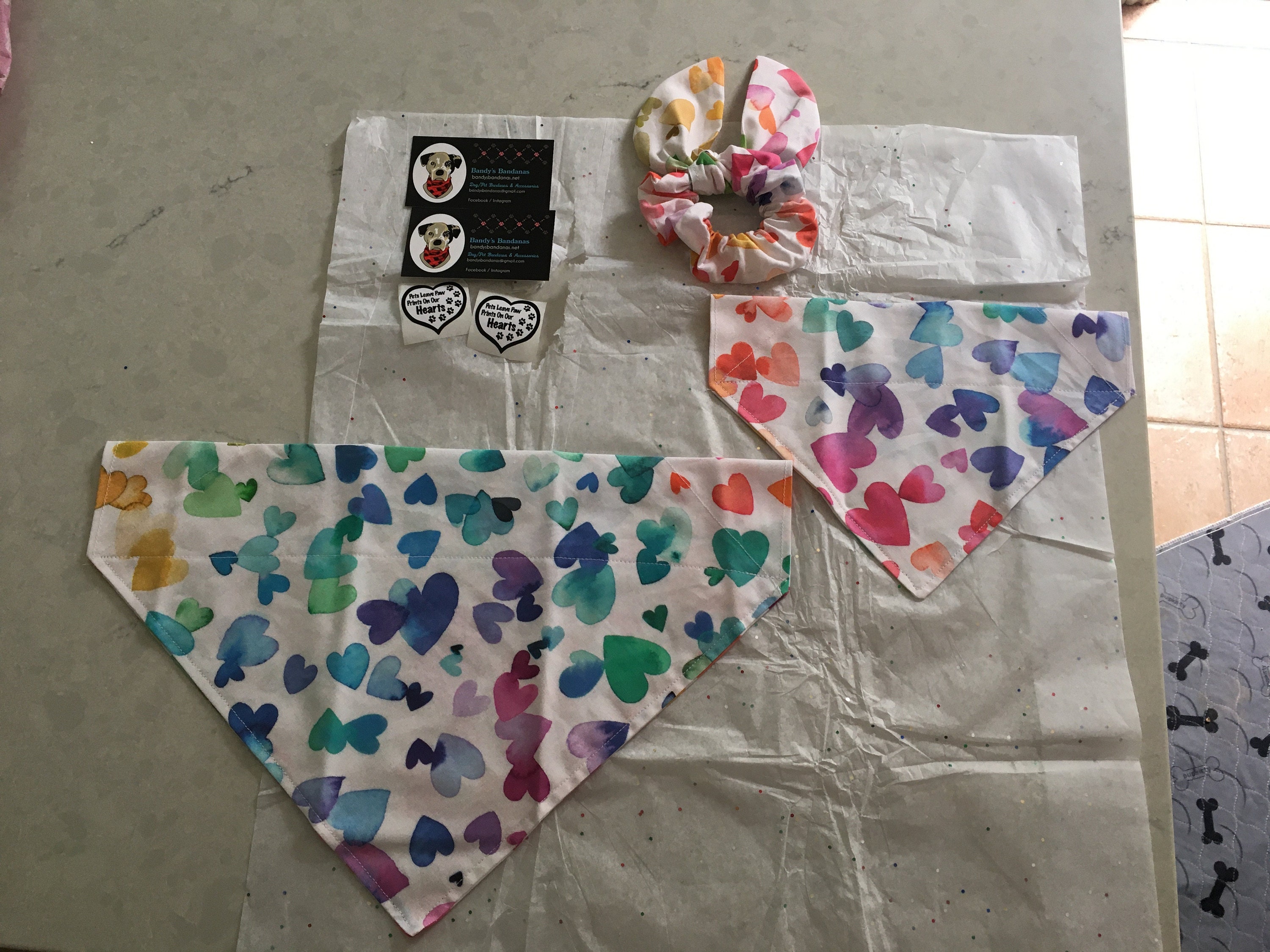 Super cute dog bandanas . I love that they have a matching pet/owners bandana with hair tie. They package the items nicely and even left a cute stickers .