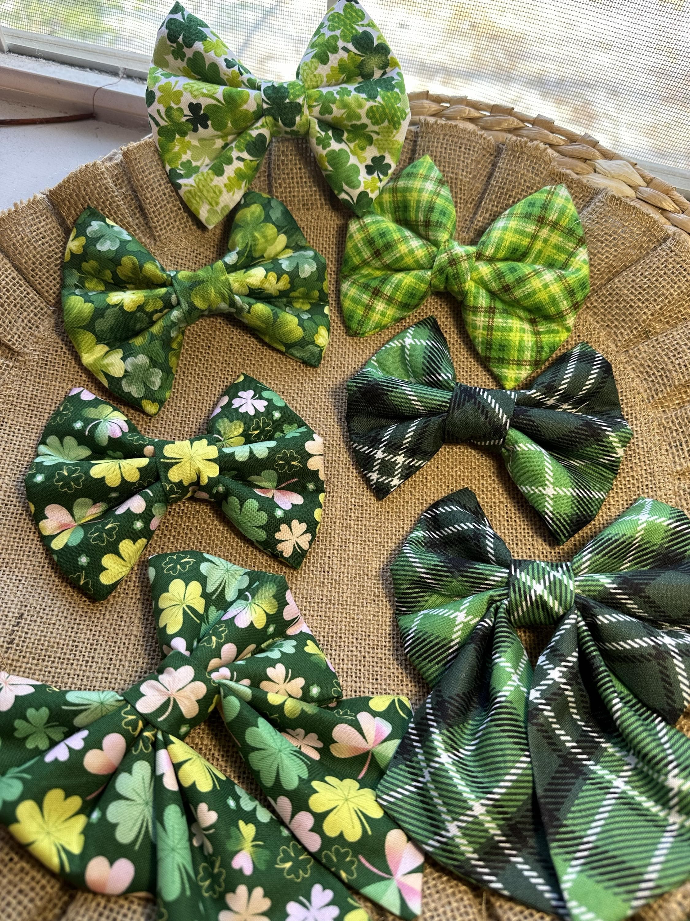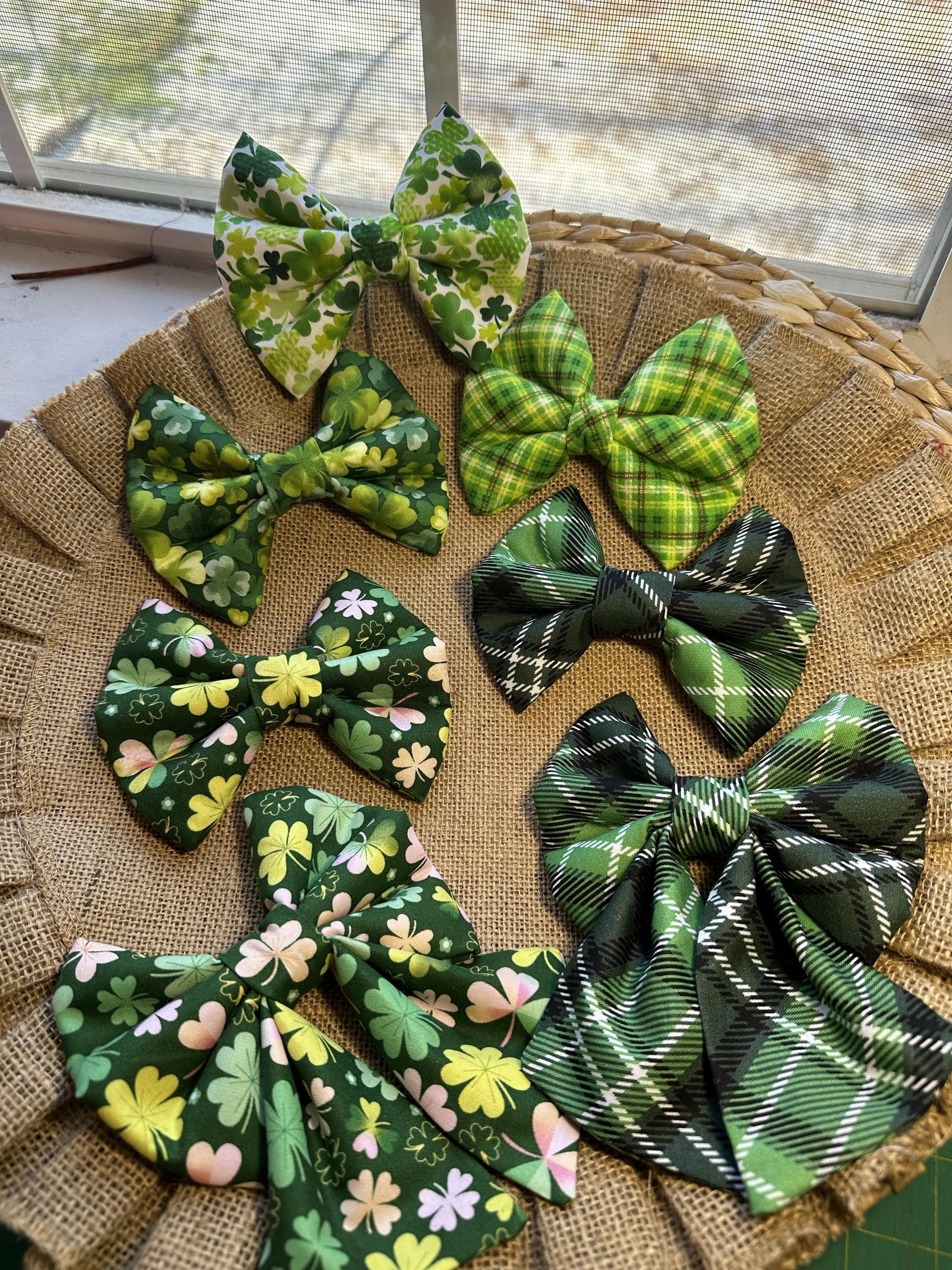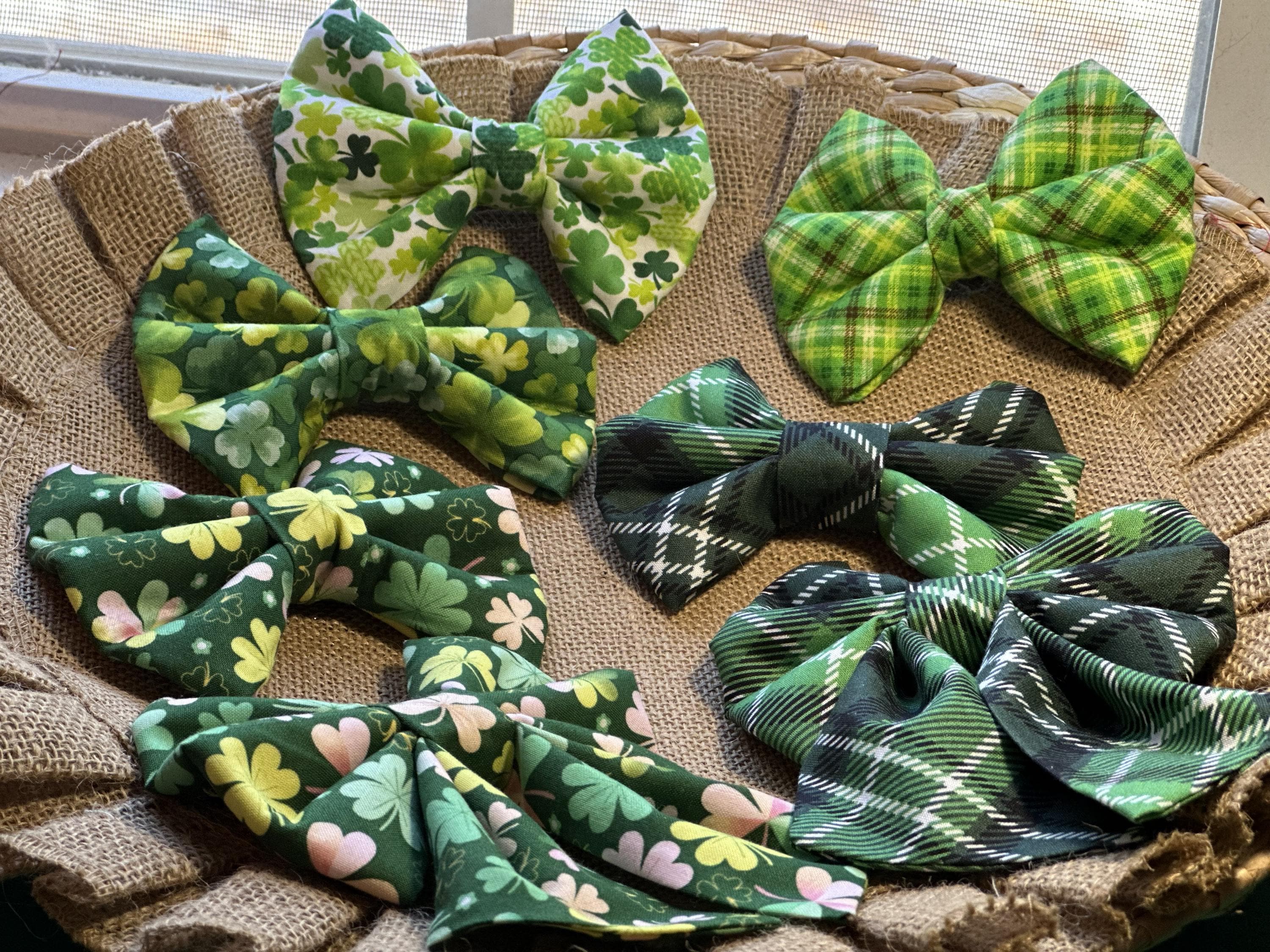 Stylish St Patrick's Bows for your pet. These fun Bows have 2 loops on back which slides right onto your pets collar.
