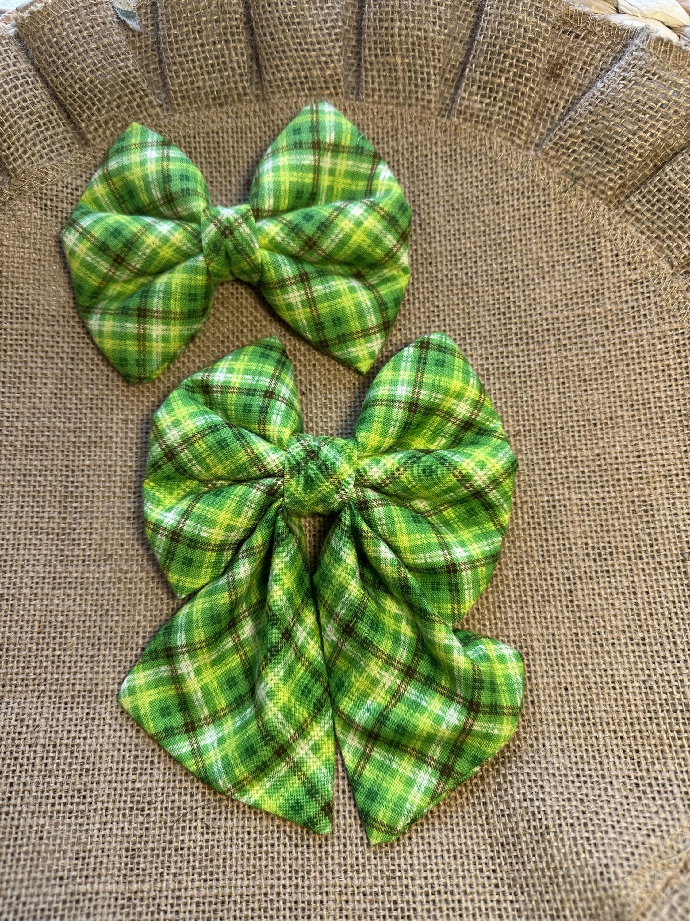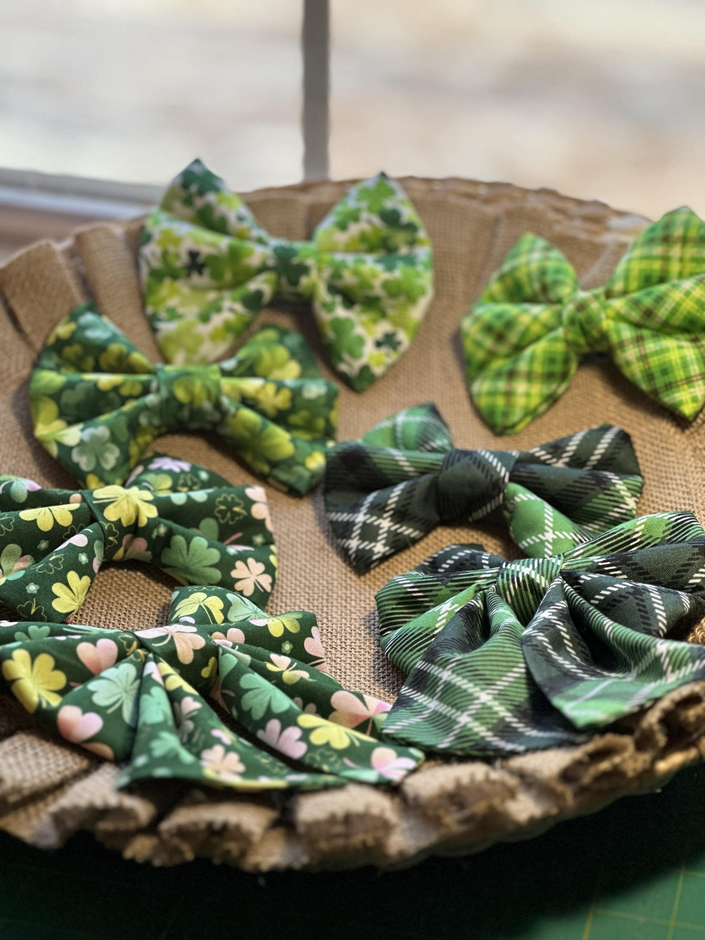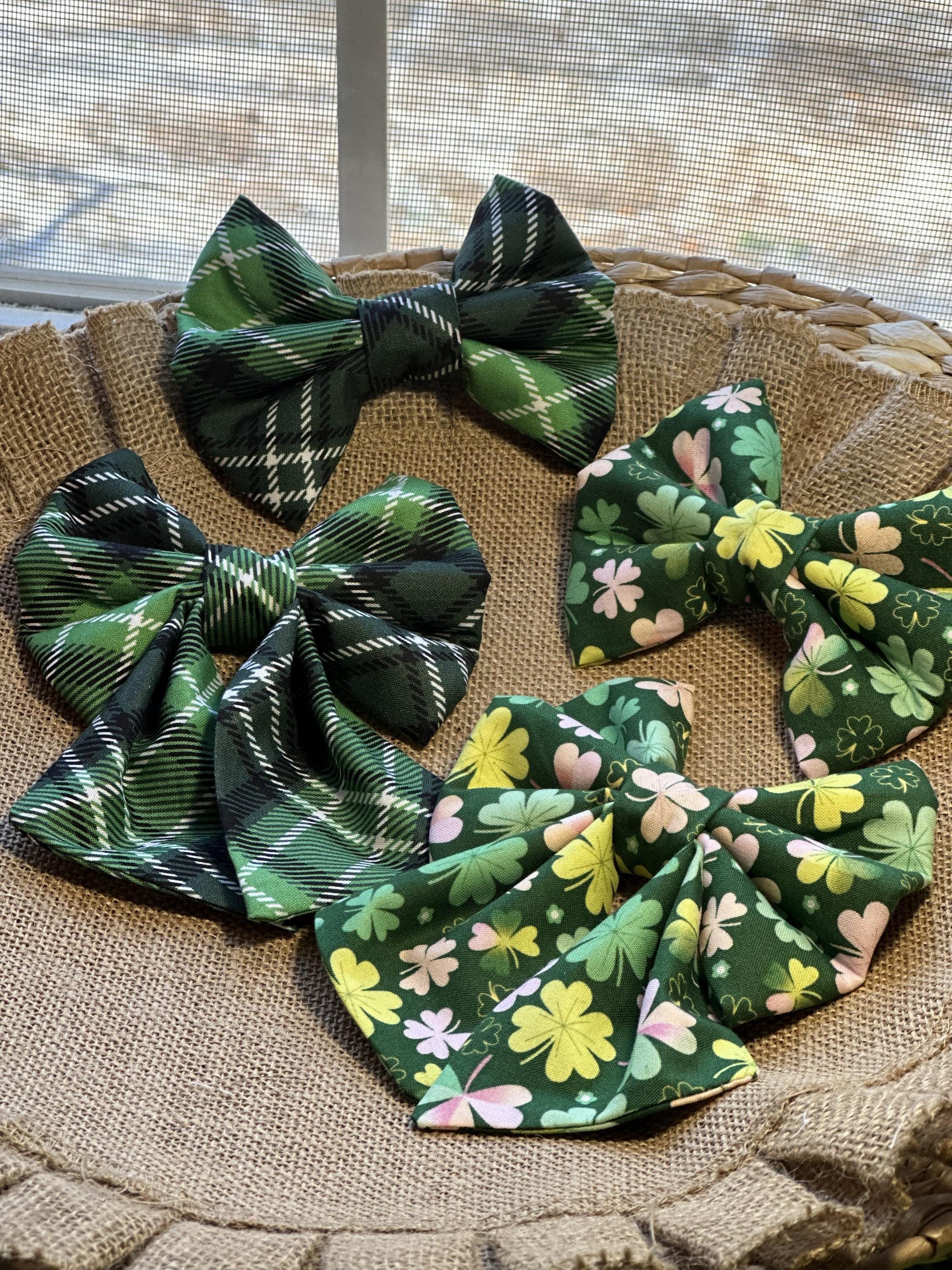Stylish St Patrick's Bows for your pet. These fun Bows have 2 loops on back which slides right onto your pets collar.