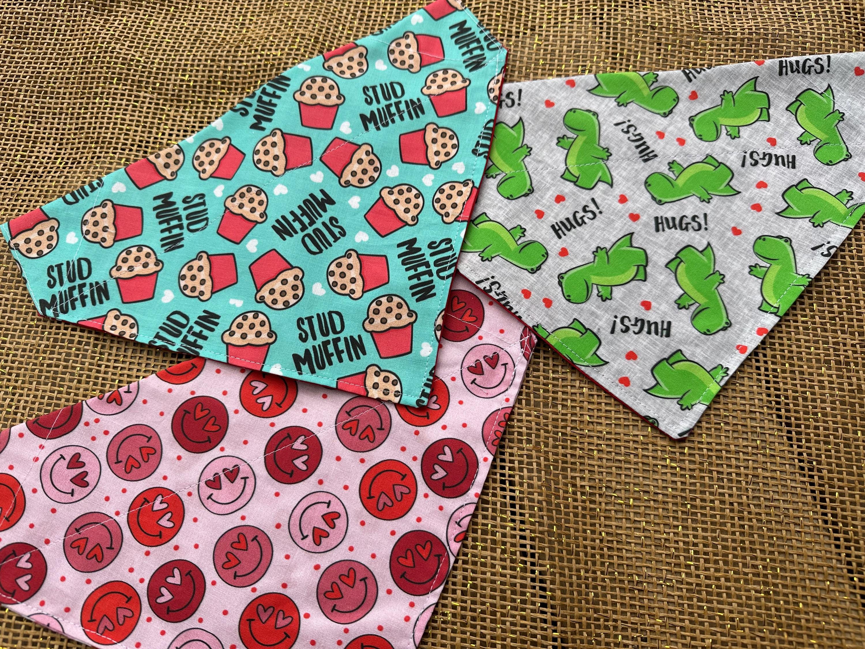 Does your pup LOVE Hugs... is He or She a Dino Hugger? This Bandana will be perfect for him/her. FUN Valentine's Day Pet Bandana for your little Hugger. Bandanas come in Over the Collar or Tie On style.