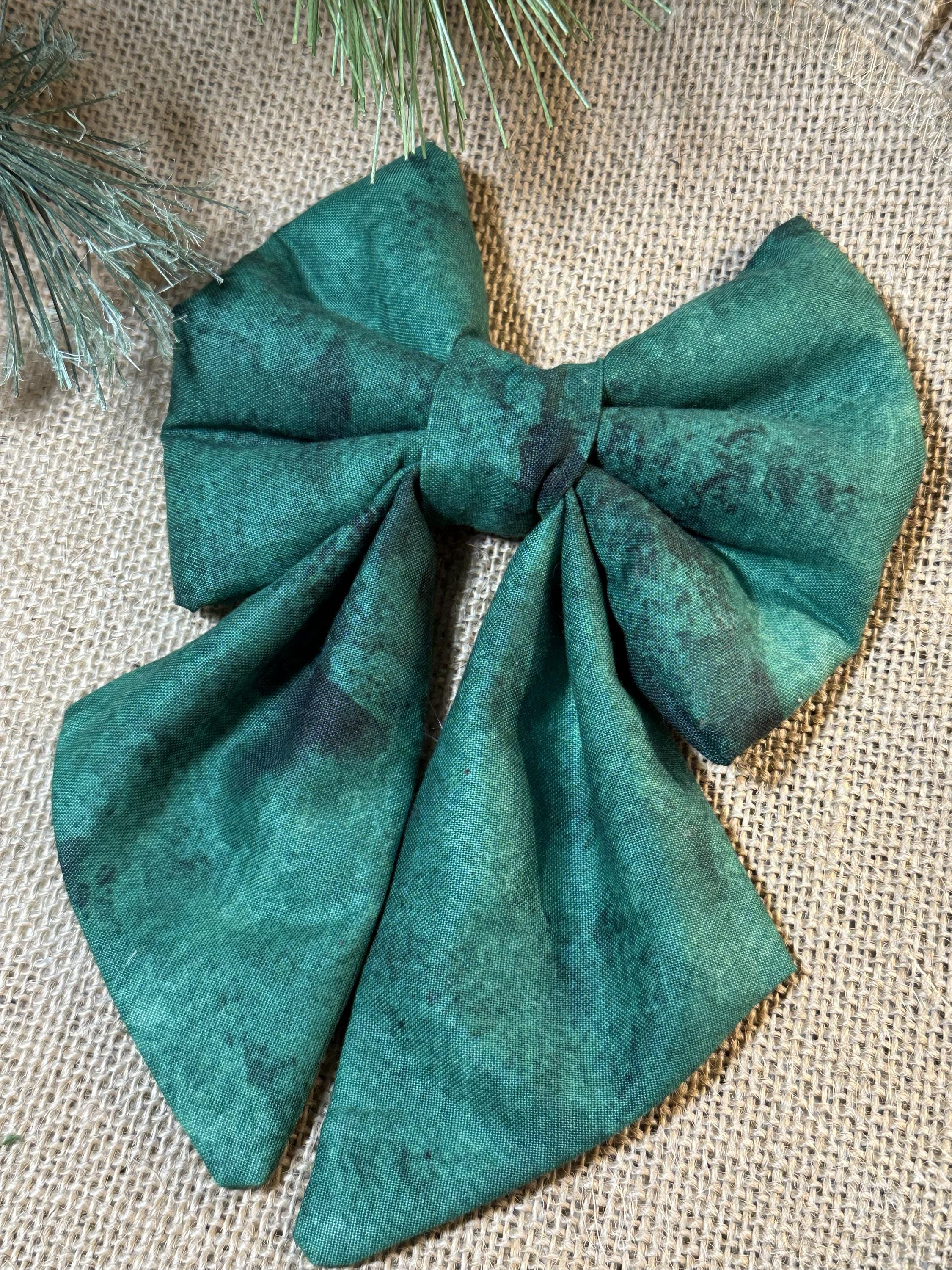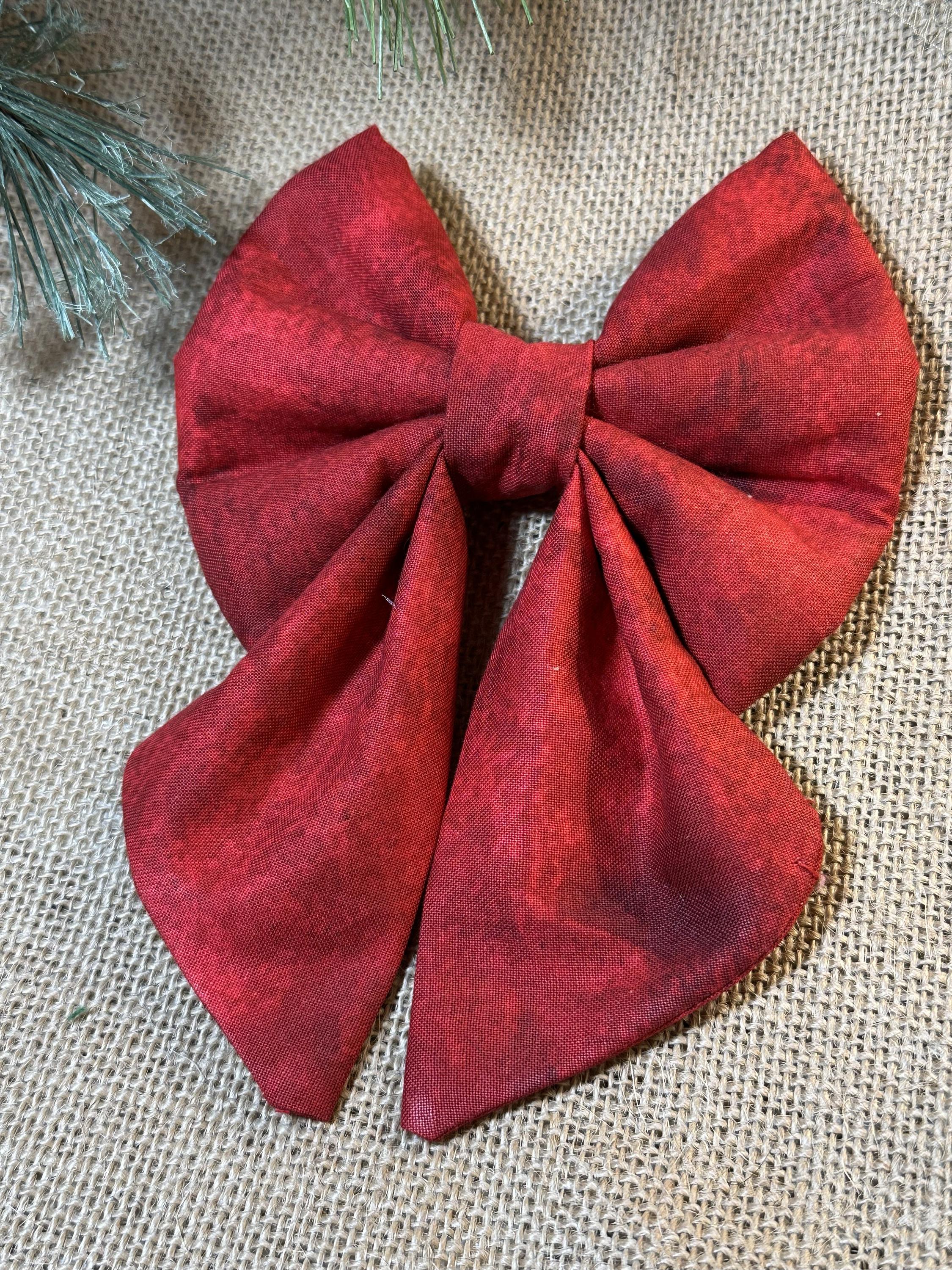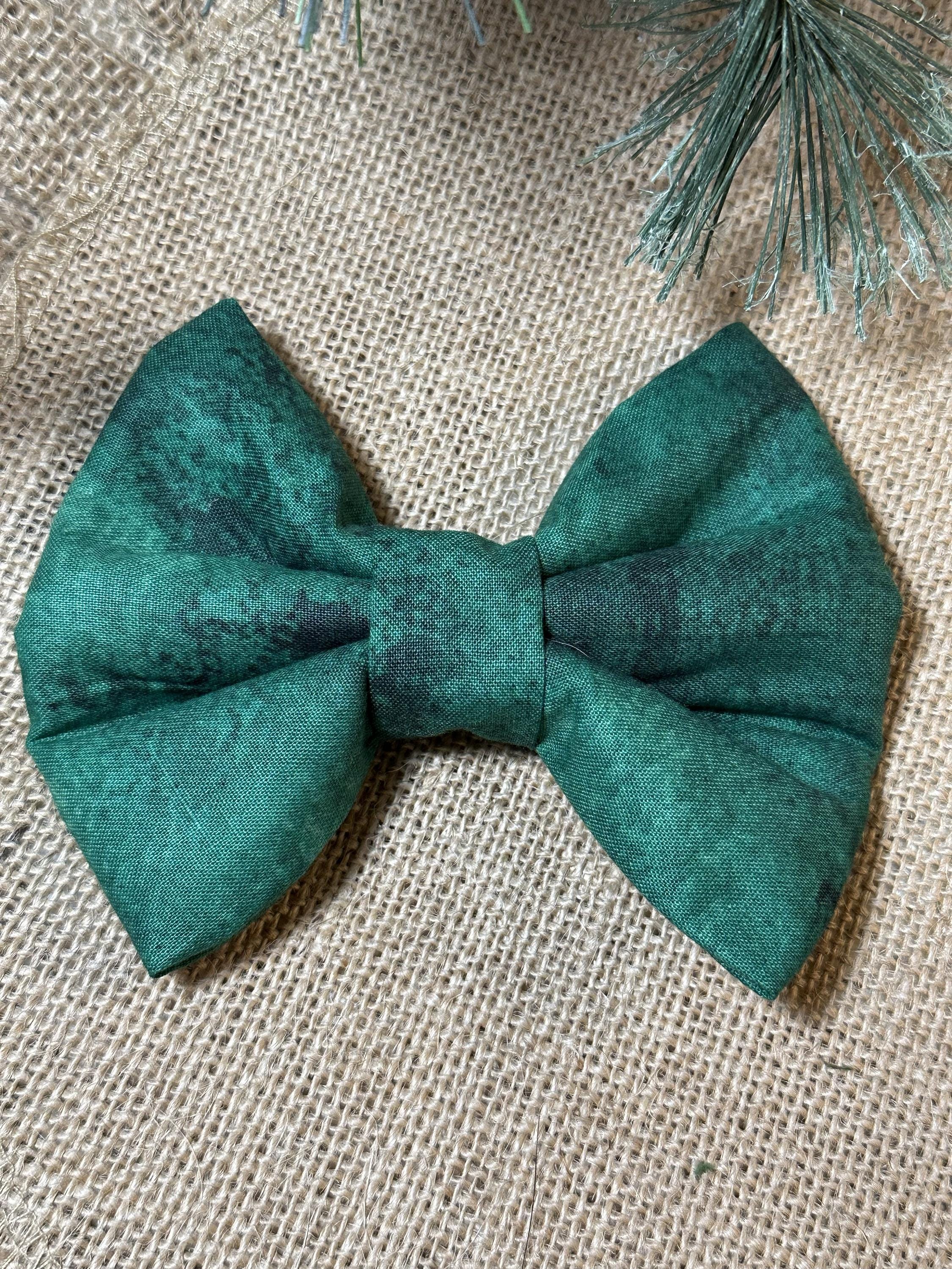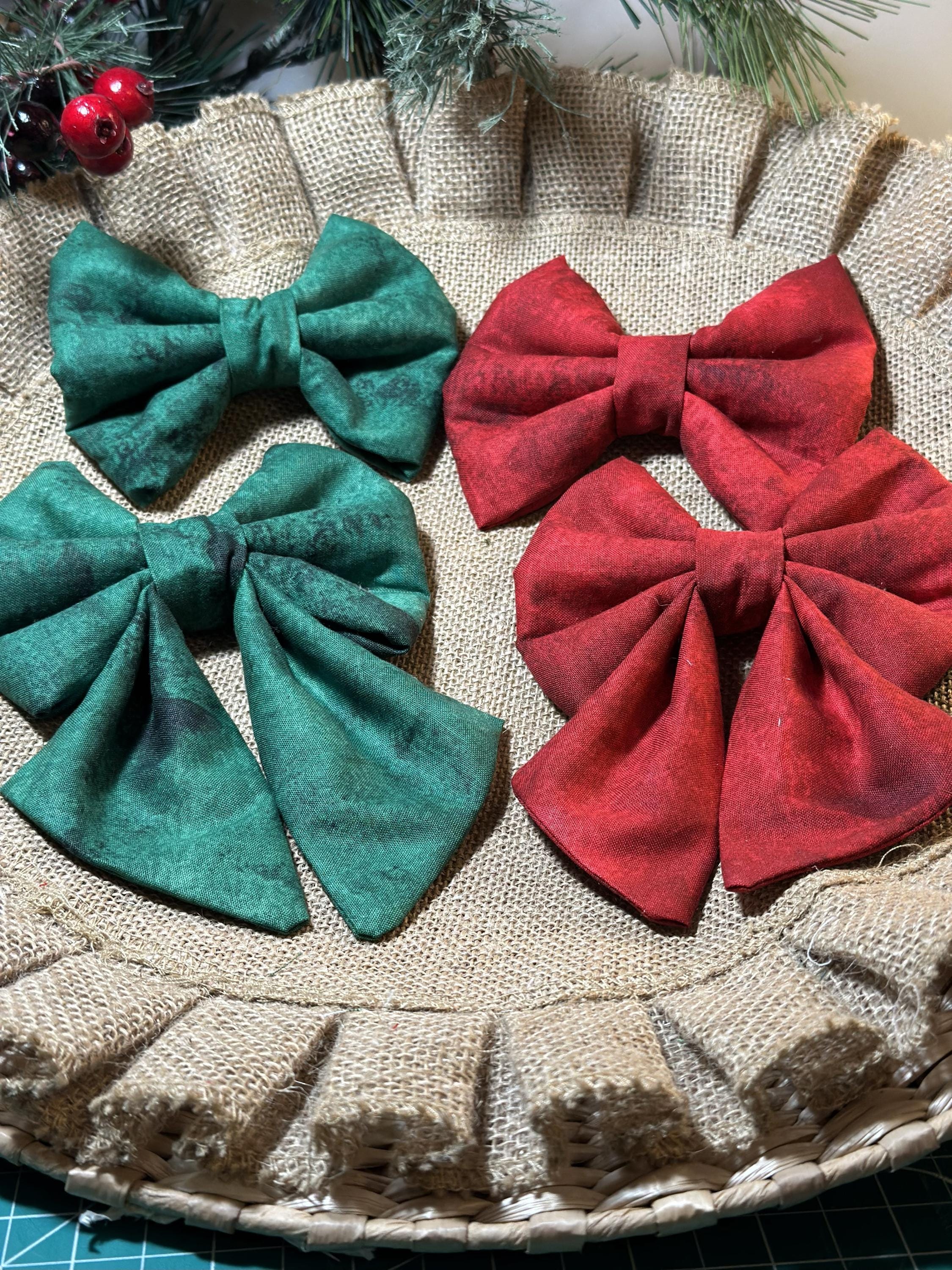 Super Cute Christmas Bows and Sailor Bows. Red and Green Traditional Christmas Bows. These Bows slide on your pups collar. Your pup will be ready for Santa wearing this bow. 2 Elastic loops on the back of the bow that you slide your dogs collar through. Loops should be snuggle to hold the bow upright.