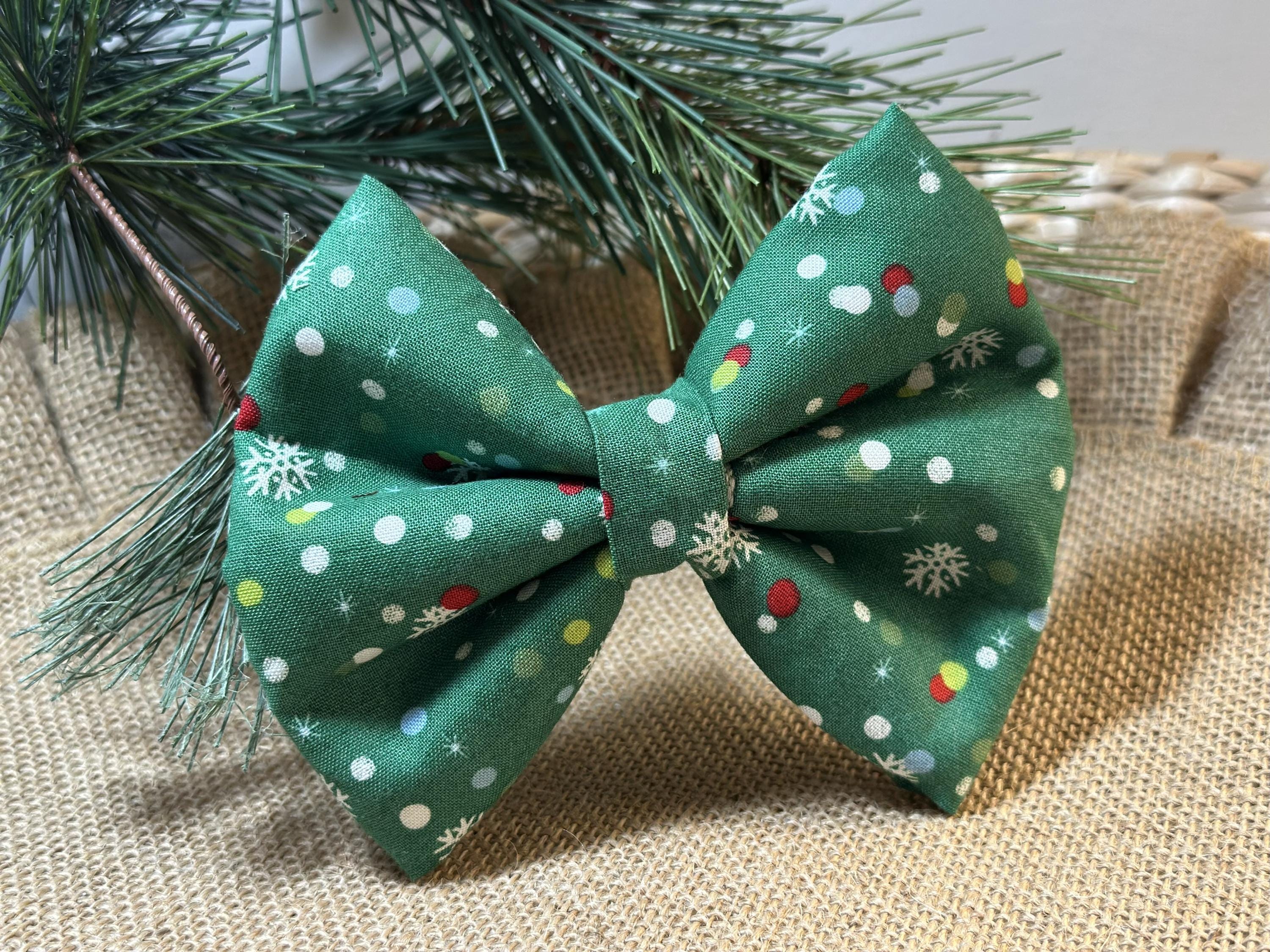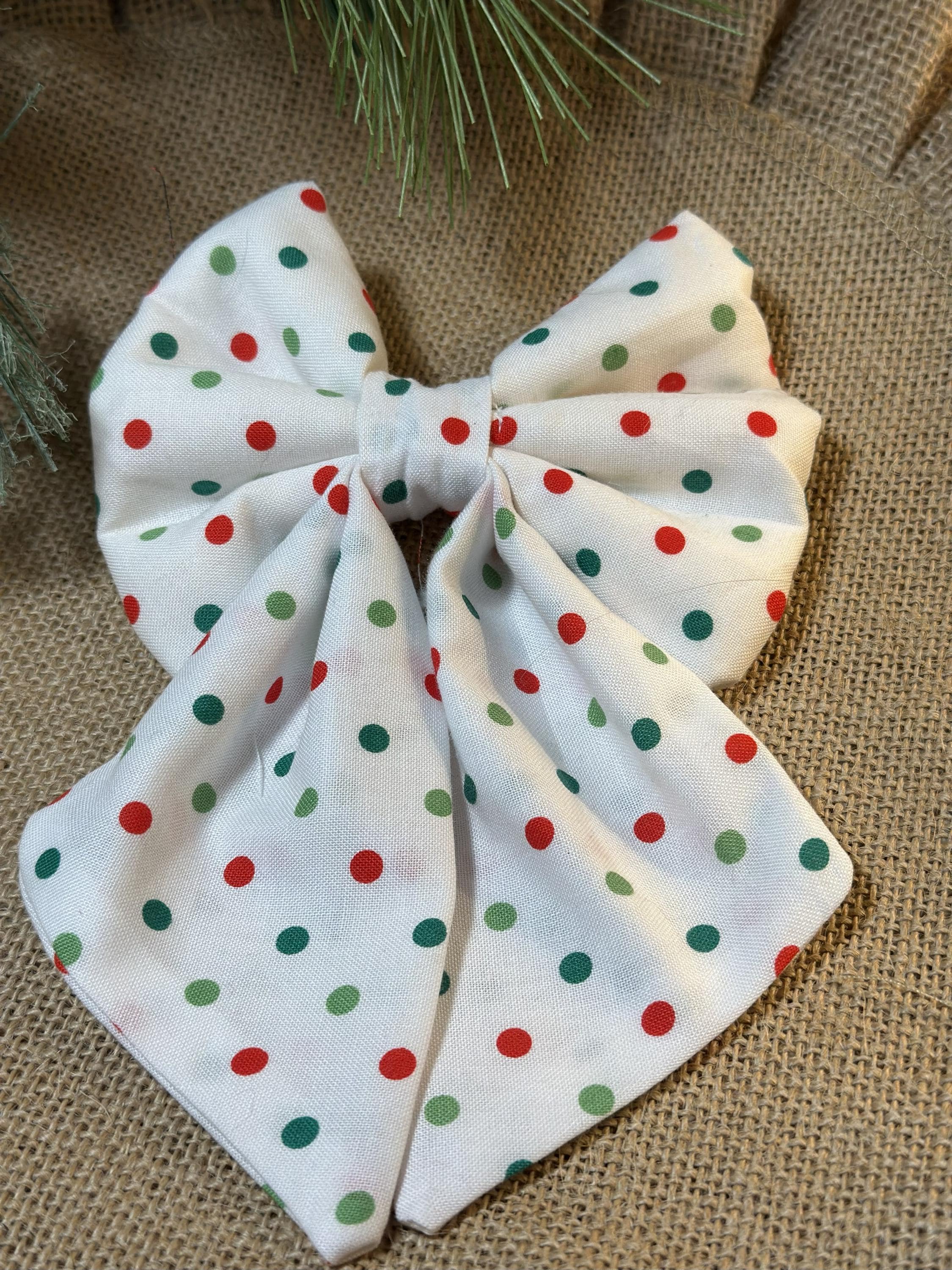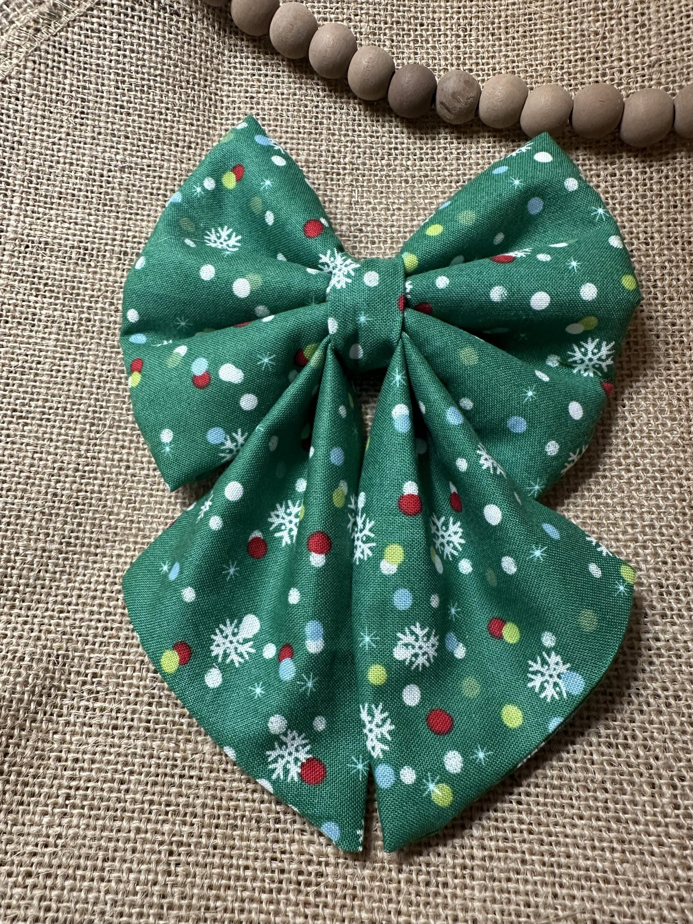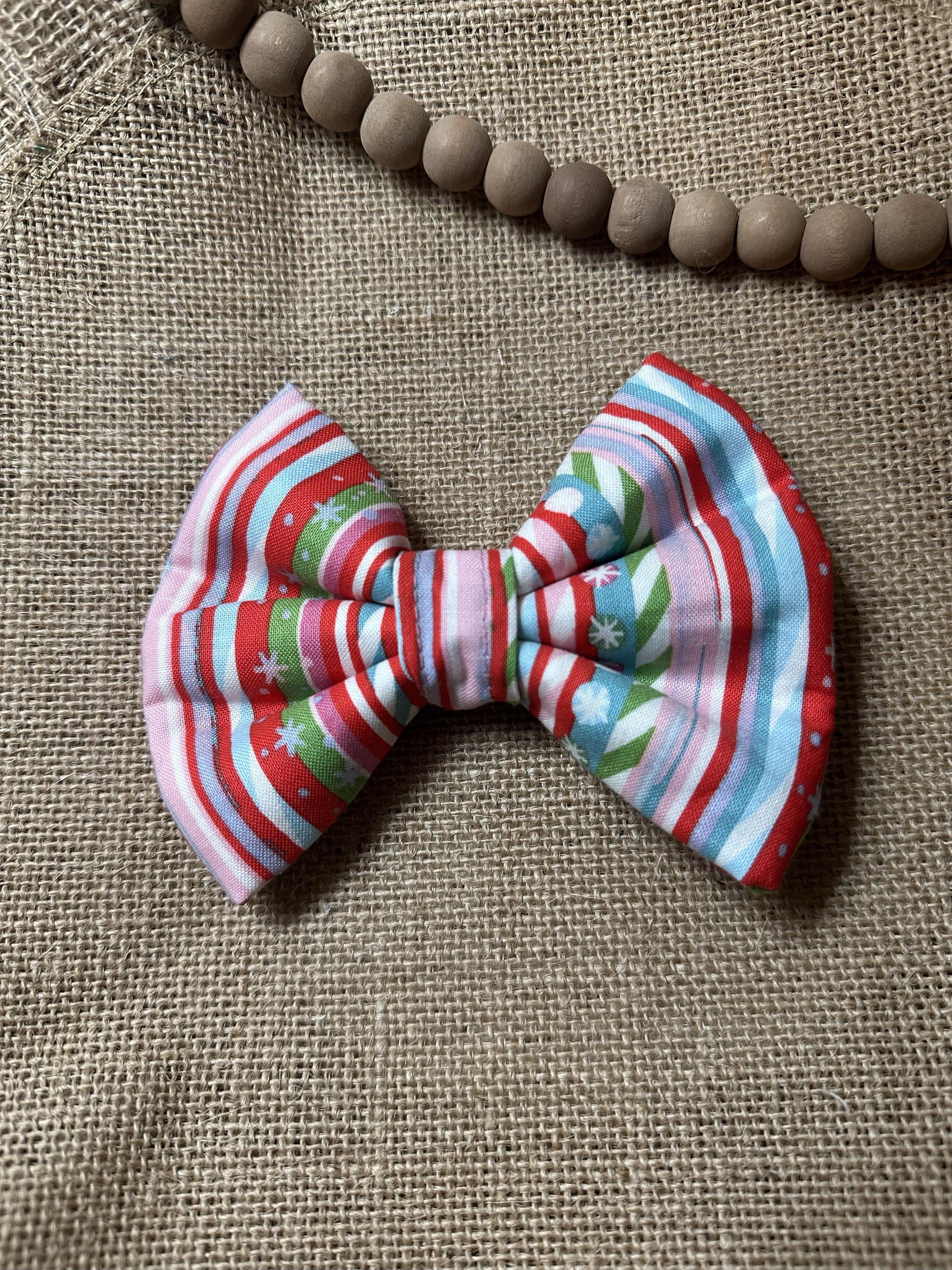 Super Cute Christmas Bow Ties and Sailor Bows... All of these Slide onto Your dogs collar. Your pup will be ready for Santa wearing this bow. Pretty Christmas Pink Stripe.. White with green and red polka dots.. and green with polka dots and snowflakes.. will dress up your pup perfectly this Christmas season.