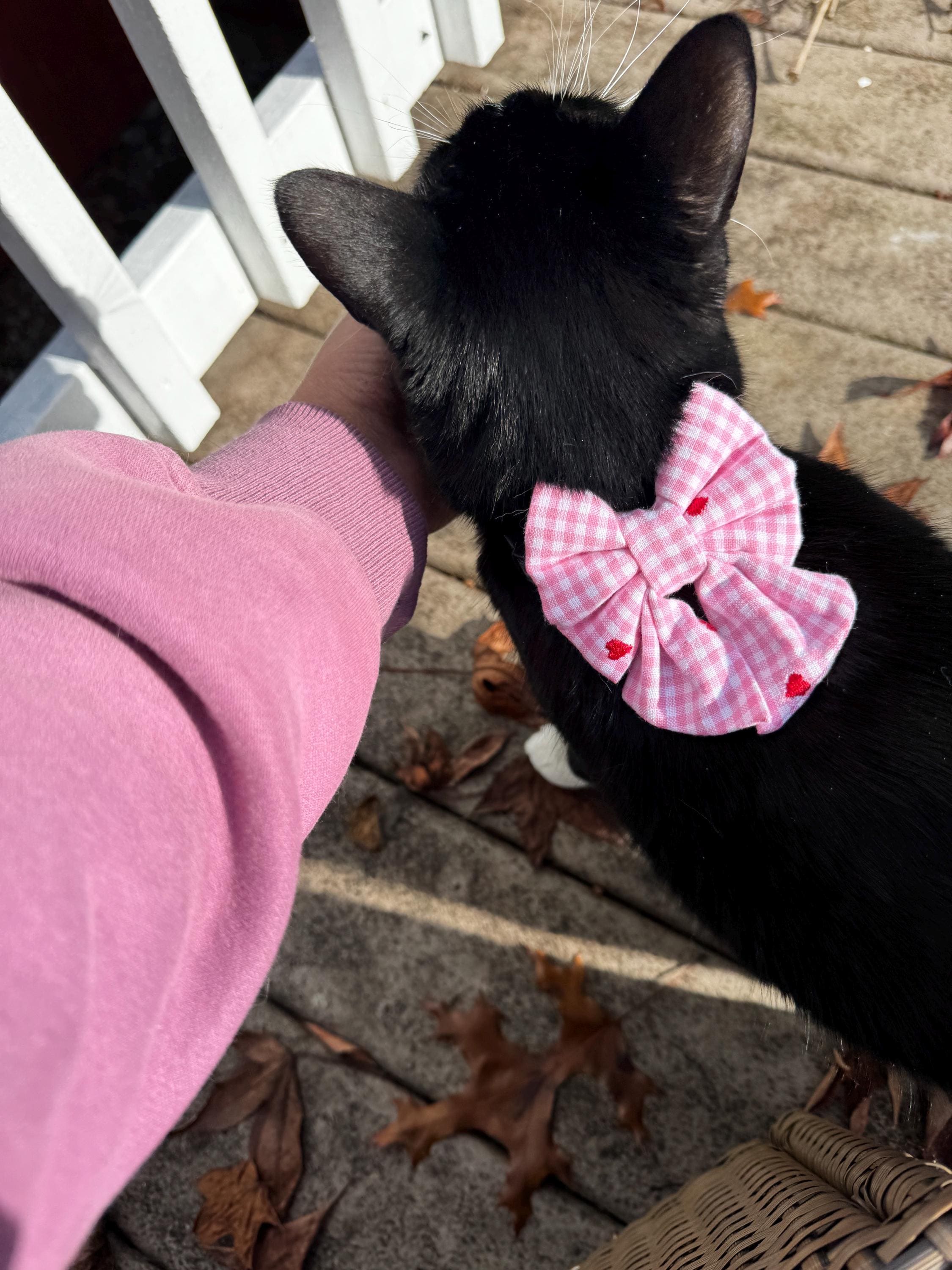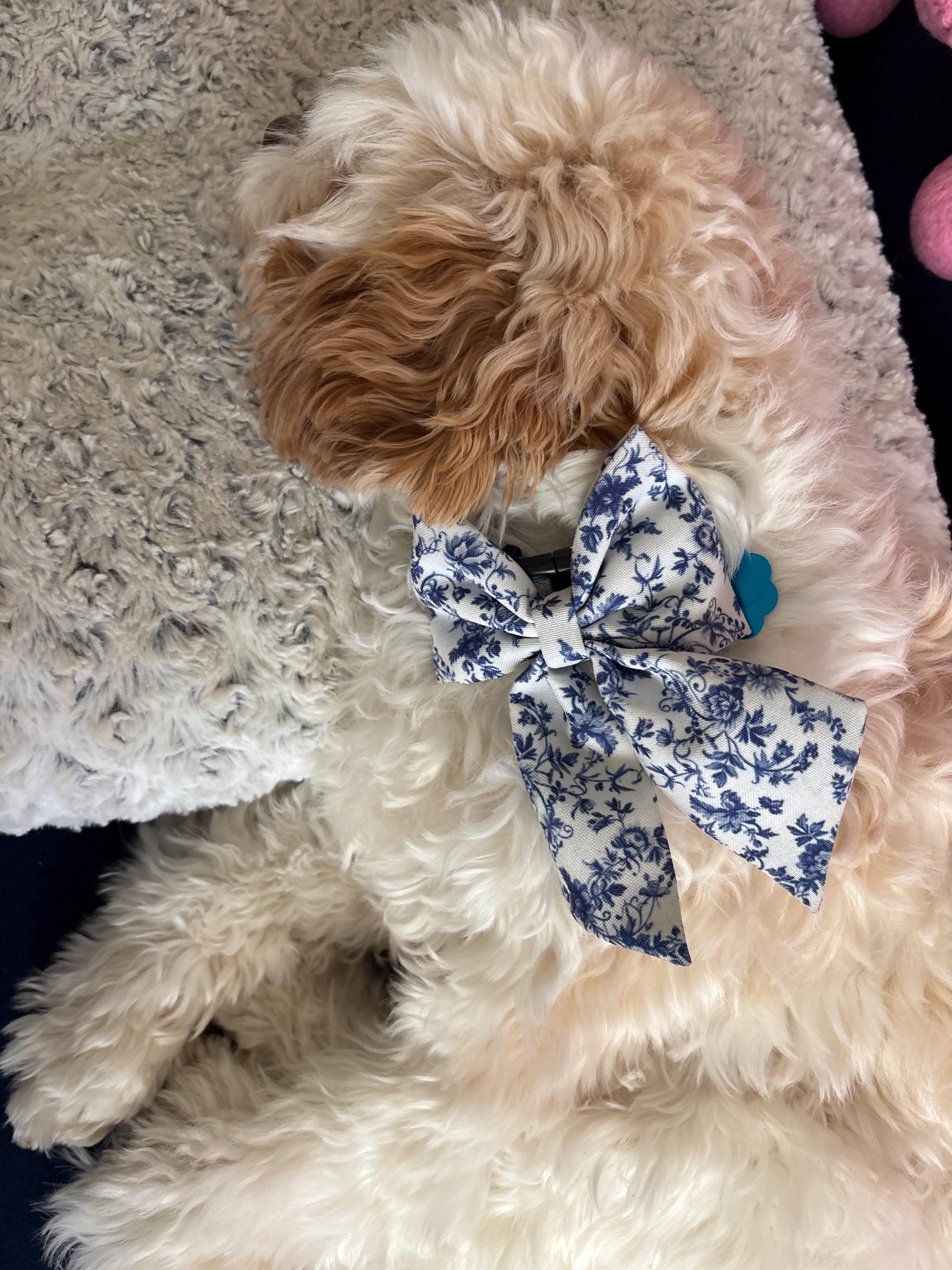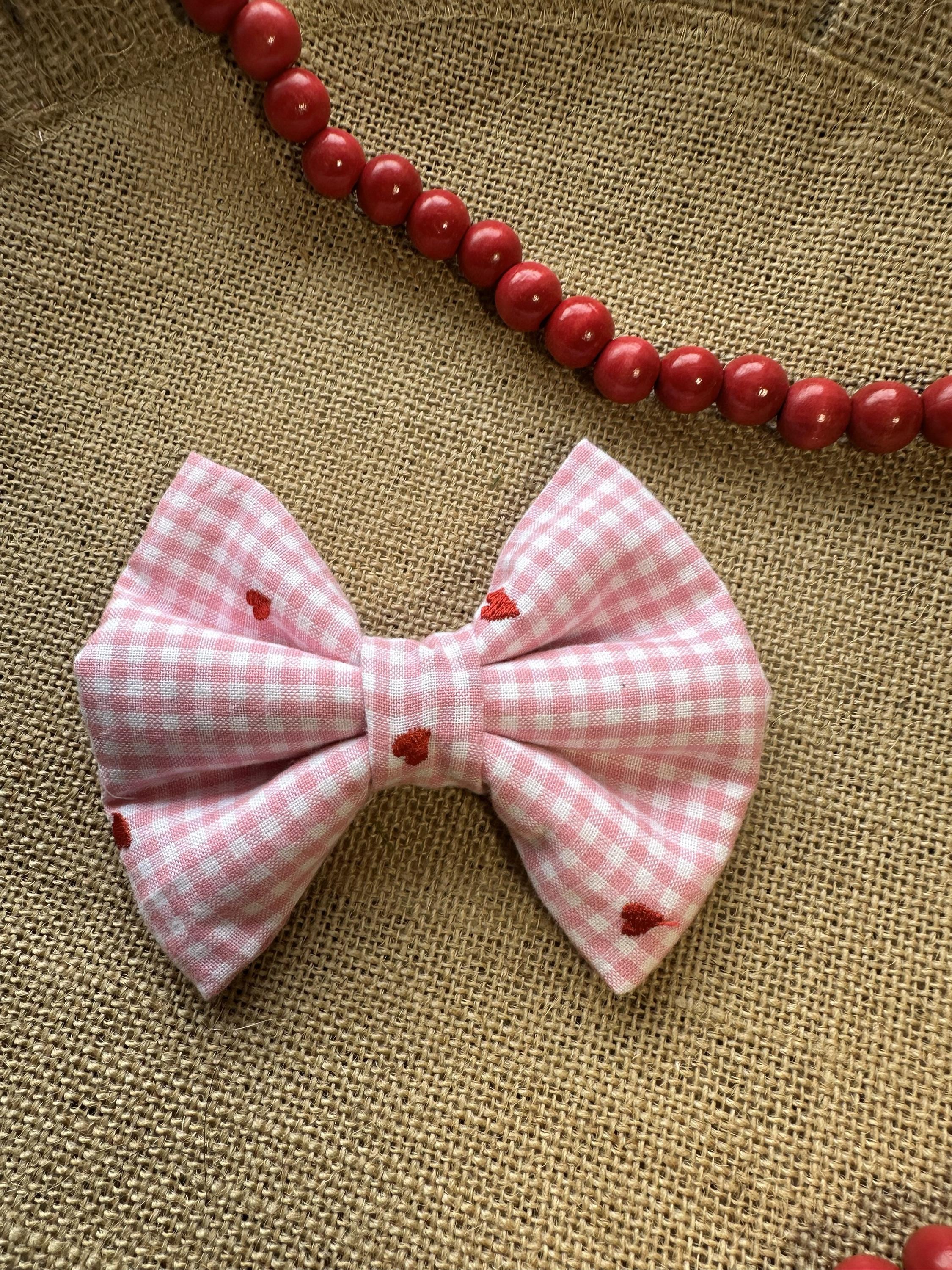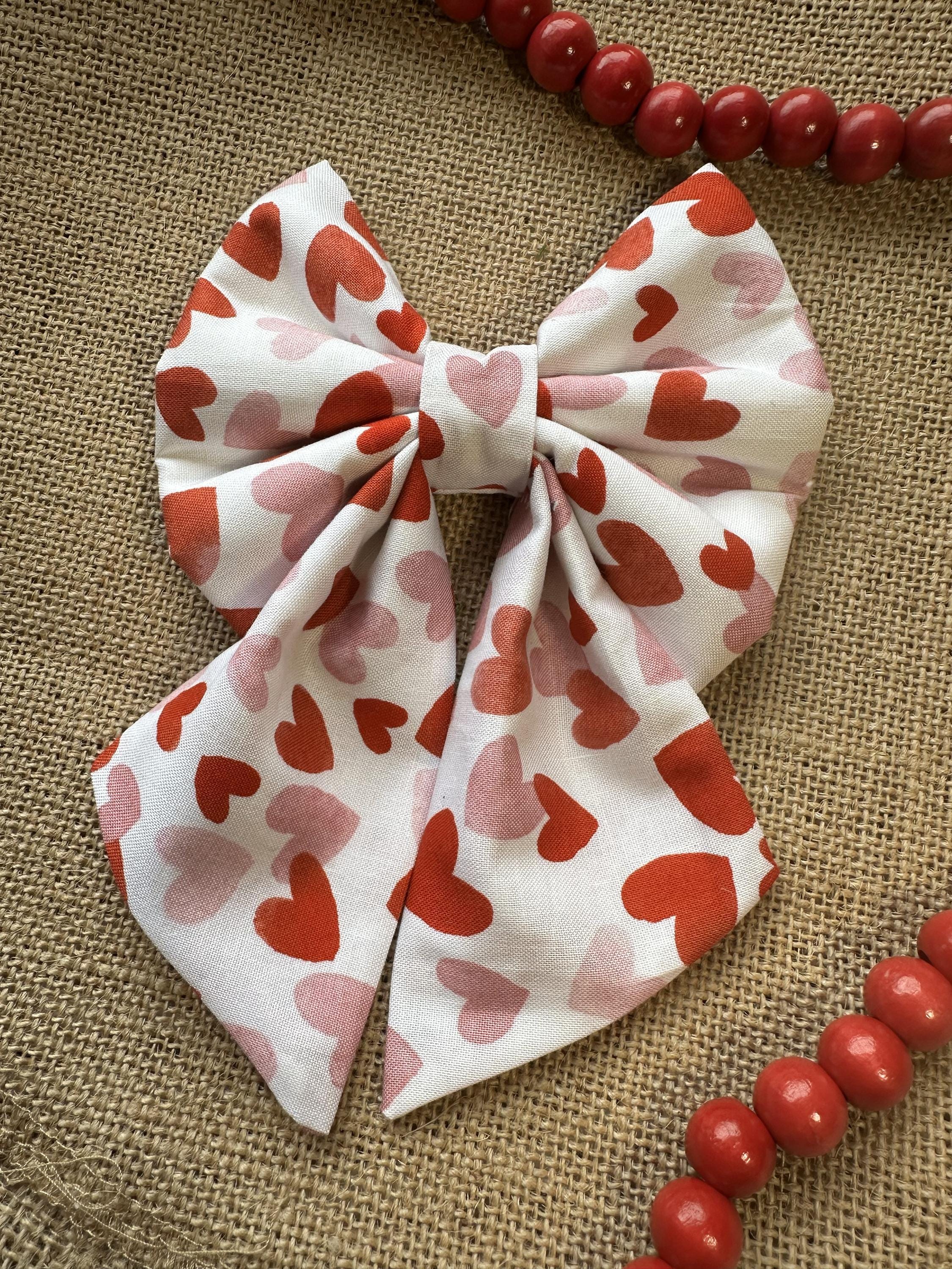 Super Cute Valentines Bows and Sailor Bows in several Valentine patterns. These Bows slide on your pups collar. Your pup will be ready for Love this Valentine's Day wearing this bow.